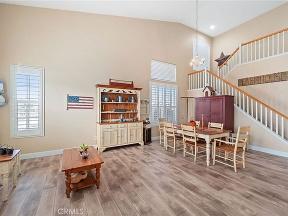 Welcome to the highly sought after Riverside neighborhood of Orangecrest! This stunning 5-bedroom, 3-bath family home features a versatile floorpan that is perfect for entertaining. When you enter through the glass paned front door you are welcomed into the formal living room and dining room with vaulted ceilings. As you continue through to the kitchen you will notice the Luxury Vinyl Plank flooring throughout the downstairs that was installed in 2022, the kitchen cabinets and granite counter tops were installed in 2013. Enjoy the gas powered fireplace in your oversized living room while watching the TV located in the custom built-in entertainment center. The downstairs is complete with two bedrooms and a 3/4 bath. Upstairs you will find a large primary suite with an attached bathroom; double sinks, a separate bathtub and shower and a large walk in closet. You will find an additional two bedrooms and a full bath upstairs along with an oversized bonus room. The backyard is an entertainers dream featuring a built in pool and spa and a side yard with grass for your family pets. Additional features of this move in ready home are window shutters in the main rooms, ceiling fans in the bedrooms, the carpet and baseboards were replaced in 2022 and the water heater was replaced in 2023. You will enjoy your privacy with only having neighbors on one side; there is also an abundance of street parking alongside the house. This home is within walking distance to award winning schools, Orange Terrace Park and Baseball fields, Community Center, and Library. Schedule your showing today!