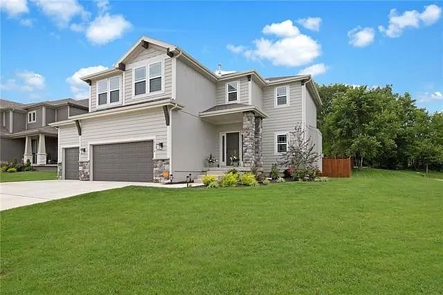 Welcome home to this beautiful, modern single-family residence in the desirable Red Hawk Run subdivision! Built in 2019, this nearly new home boasts approx. 2,100 square feet of living space, with 4 bedrooms and 2.5 bathrooms. KEY FEATURES Open, flowing floor-plan with plenty of natural light and contemporary finishes throughout Stunning kitchen with granite countertops, stainless steel appliances, and a center island with bar seating Soft-close custom cabinetry and hardwood floors on the main level Spacious master suite with walk-in closet and a luxurious bath featuring separate tub and shower Laundry conveniently located on the bedroom level Generous 3-car attached garage providing ample storage and parking EXTERIOR & LOT Corner lot (approx. 0.22 acres / ~9,580 sq ft) Fenced backyard for privacy, backing to green space for scenic views and tranquility Attractive curb appeal with stone and modern siding accents LOCATION & SCHOOLS Easy freeway access for convenient commuting Excellent school assignments: Woodland Elementary, Prairie Trail Middle School, and Olathe Northwest High School Certain pieces of furniture can remain if desired. All utilities to be covered by tenant. No smoking allowed. Up to 2 pets total allowed.
