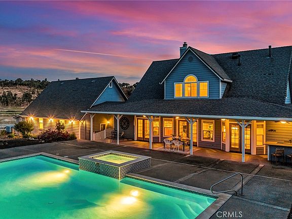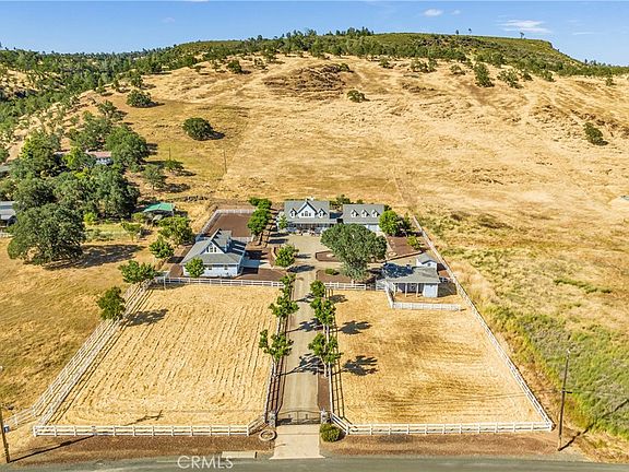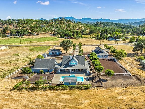 Equestrian Estate at Hidden Valley Lake! One of a Kind 5+ Acre Rancho property (no dues!) includes a 4 bed / 3 bath home with 2,460 SF, a 35,000 gallon POOL & SPA + Pool house storage room, an oversized 3 car garage/shop, Massive shop building with kitchenette + full bath, 2 stall horse barn and riding arena! As the electric gate opens, prepare to be impressed by the long tree studded driveway that leads to a well manicured and fully fenced/cross fenced property. 2 front pastures provide an open space for animals to graze. Gravel and concrete throughout the property for clean and easy access to the home and detached buildings. Enter to find beautiful hardwood flooring on the main level, large living area with 2 story ceilings + crown molding, a formal dining room + breakfast nook and a large kitchen with center island, stainless steel appliances and plenty of cabinetry for storage. Indoor laundry with washer/dryer included! 2 sets of french doors lead to the covered deck with outdoor entertainers bar, large patio with sparkling pool + spa and a small pool house, great to store all the pool toys and essentials! Beyond the pool area are raised garden boxes and more open space to be developed as you see fit! 2 beds + 2 baths on the main level including the primary suite with backyard access & ensuite bathroom with large jetted tub and walk-in shower. Upstairs find 2 additional bedrooms with double closets & full bathroom. The breezeway adjoins the large 3 car garage/shop with a staircase to an undeveloped bonus area. Massive shop building with kitchenette and full bathroom was used to store classic cars. 2 stall horse barn and tack room is fully padded including fire sprinklers. Pump house supplies well water to all buildings and irrigates over 30 trees including oak, fruitless mulberries, smoke, flowering dogwood, maple, various fruit trees & more! Upgrades include underground electric, automatic 22,000 KW generator with separate fuel supply that runs the entire property, gutter guards on all buildings, water softener, solar attic fans on the house and Hardie Board cement siding on house, garage and pool house. This INCREDIBLE property shows attention to detail and pride of ownership. Country living at its absolute finest!