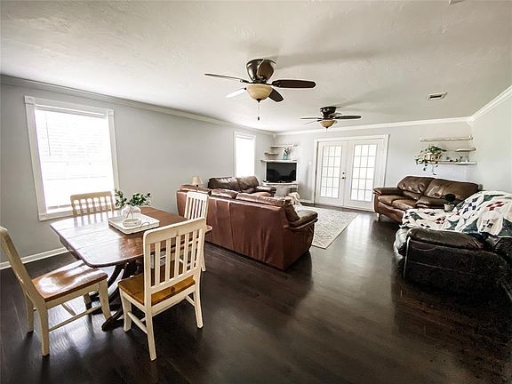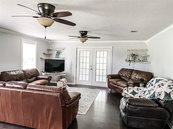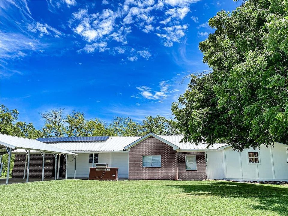Country Charmer... Spacious home that sits on .999 Acres. No backyard neighbors, mature trees, fruit trees, open living dining area, large primary bedroom, granite countertop in kitchen,rustic bonus room off of living room, mudroom shower, metal roof, carport, features a grand back porch to watch the beautiful sunrise , attached outdoor grill, solar panels.