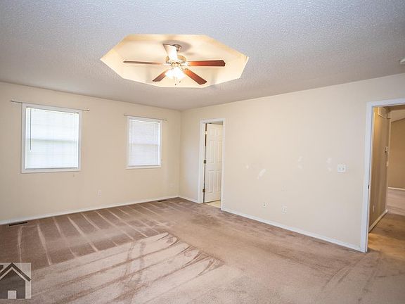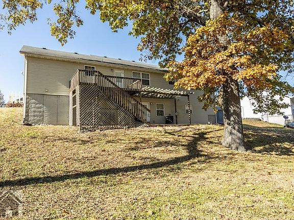 Check out this 4 bedroom, 3 bathroom home in the Waynesville school district conveniently located just outside of the West Gate of Ft. Leonard Wood. The main floor features a living room carpeted for comfort with vaulted ceilings and a ceiling fan. The living room opens into the dining room/kitchen combo. The kitchen features medium oak cabinetry with white appliances. The laundry room is also located on the main floor and has extra shelves for storage. The master bedroom lets in plentiful natural light and has a spacious walk-in closet with a window. The en-suite bathroom has a double vanity, jetted tub, and separate shower. A guest bedroom and bathroom complete the main floor. The lower level is perfect for entertaining with a rec space which includes a pool table and a family room with a fireplace. Also located in the basement are two guest bedrooms with walk-in closets and a guest bathroom. Step out onto the deck to overlook the backyard.