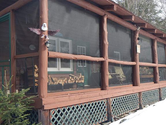 This warm and charming log home is nestled on a lovely 2 acre lot. It boasts an open concept living/dining/kitchen. Vaulted ceilings with a beautiful stone gas converted fireplace. During the nice weather retreat to the inviting screened porch and enjoy the nicely landscaped yard. Plenty of room for all your gardening pleasures. This house is truly in move-in condition with many recent updates such as: new rear metal roof (2016), recently professionally painted (2015), all vinyl windows, gas remote fireplace, new wood stove (2016), new stainless steel chimney and skylight (2016), all wood floors, gravel driveway and nice sized workshop/shed. You have direct access to VAST trails. There is an additional cleared area to add your garage. These owners have put their loving touch on making this a great home to make happy memories with your family.