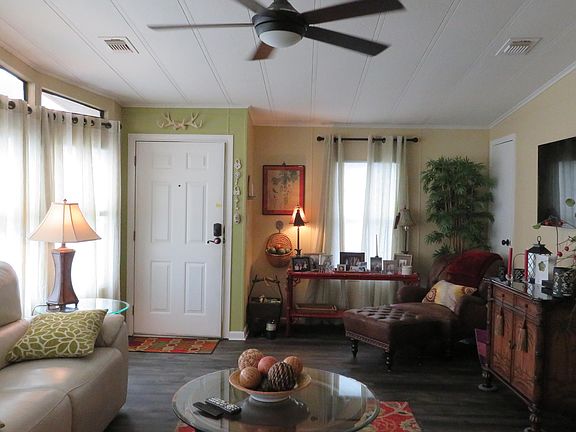 This one has everything you desire! Pre-inspected & clean bill of health. Countless updates will give you safety, functionality, & beauty. Gorgeous kitchen is outfitted w/ many recent updates, including beautiful cabinetry, granite counters, tile backsplash, & new appliances. Bedroom suite is well-appointed w/ a large soaking tub, separate shower, & plenty of counter space. Open floor plan has vaulted ceilings, durable moisture-resistant vinyl plank flooring, warm lighting, & a tasteful palate of colors. FL room has A/C and the square footage is not included in estimates. Bring all your stuff for the massive amount of additional storage space that is securely attached & accessible from inside. Save money by purchasing this home because the seller is including membership to the amenities.