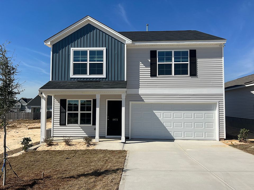 The Guilford is a four-bedroom, two-and-one-half bathroom with an office located just off the entry. The kitchen has granite countertops and stainless-steel appliances. Upstairs, the loft space divides the primary suite from the three secondary bedrooms. The primary suite has a 5' shower, linen closet, dual sink vanity, and large walk-in closet.