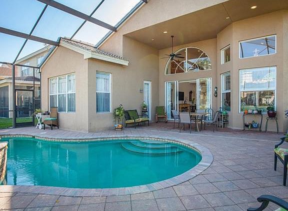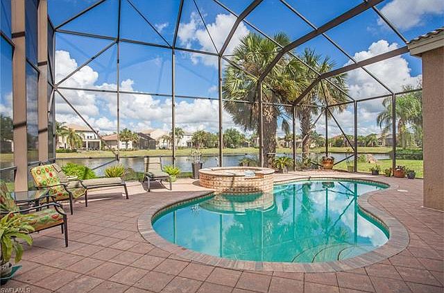 This stunning home has it all!!! From the moment you walk into this bright, open and airy home you will notice the wonderful view of the pool and lake in this open concept home. 4 bedrooms plus large open loft and 3 baths. Well maintained with completely updated kitchen with granite counter tops, tile on the diagonal, stainless steel appliances, double wall oven, wine cooler, breakfast bar, built in eating area, first floor large master suite with 2 walk in closets, separate shower/tub and double sinks. Sparkling pool with waterfall spa overlooking lake, covered lanai and pavered pool deck. Large dogs? - no problem, this wonderful community has no dog size restrictions. Saturnia Lakes offers beautifulyl well maintained grounds and well appointed accommodations including 24 hour guarded gate, Community Lap Pool, Community Swimming Pool, Children's Pool, Community Spa and Sauna, Clay Tennis Courts, Basket Ball Court, Children's Tot Lot, Passive Park, Social Hall, Card Room, Craft Room, Billiards Room, Fitness Center, Dance Room, Internet Cafe and Putting Green. Come and enjoy the much desired lifestyle living in Saturnia Lakes - not far from downtown and Naples beaches.