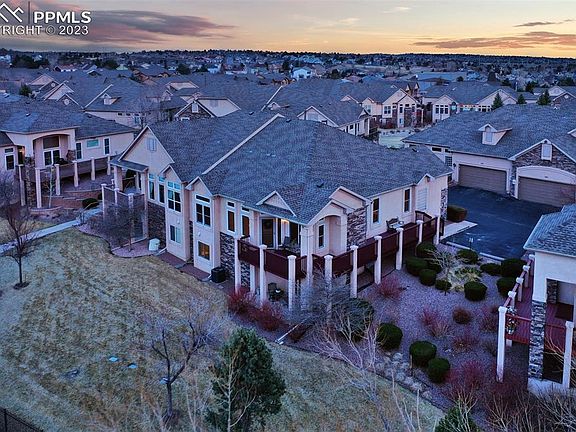 This highly desired stucco/stone ranch townhome built by Classic Homes is nestled along open space and in award winning Academy School District 20. You rarely see this size townhome with a walkout basement and open floor plan. Truly a phenomenal find! This end-unit is in excellent condition, close to many conveniences and in the quiet and coveted Parliament Place neighborhood. Make your way to the covered front door on a freshly painted deck. The front door opens to a spacious living room with 3-inch hardwood floors, soaring 10 ft ceilings, a gas fireplace surrounded by stone, and abundant windows that allow natural sunlight throughout. The main level features a great room, powder room, formal dining room and large kitchen with abundant cabinets, pantry for extra storage, granite countertops, eating bar with pendant lights, and stainless-steel appliances including microwave, range/oven, dishwasher, and refrigerator. The laundry room is conveniently located on the main level. The 2-car oversized garage allows you to enter easily to the kitchen to unload your groceries. The large main level master bedroom has a five-piece master bath with deep soaking tub, 2 large walk-in closets, private toilet room, and double vanity. Make your way downstairs to a lower-level family room and extend your entertainment outdoors to a covered patio and beautiful, maintenance-free back yard where you can enjoy a stroll to the neighborhood pond. The basement boasts 2 additional bedrooms with generous closets, a full bathroom, and linen closet. The unfinished storage space is well lit and adds a valuable place to store your seasonal items. Enjoy a NEW air conditioner and furnace (2022) and a water filtration system. Centrally located in Briargate, minutes away from 1-25, The Air Force Academy, and close to some of the best shopping and dining in Colorado Springs. This is a well-cared for and truly spectacular home where you will enjoy main-level living and someone else mowing your lawn!