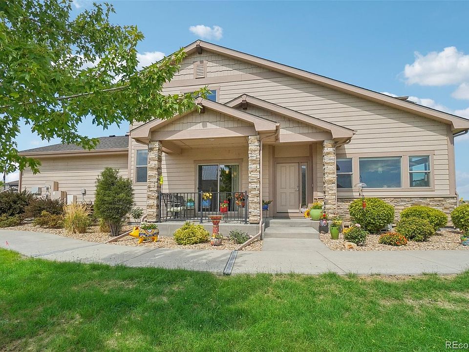 Welcome to this charming end-unit townhome! As you step inside, you'll be greeted by high ceilings and expansive windows that bathe the space in natural light. The open-concept layout seamlessly connects the living room, dining room, and kitchen, creating a perfect setting for entertaining. The kitchen is a true highlight, featuring elegant granite countertops, an oversized island, and top-of-the-line stainless steel appliances, including a gas range. From the kitchen, step out onto the concrete patio for some fresh air. The living room boasts high ceilings and a cozy fireplace, adding warmth and character to the space. The main floor includes a thoughtfully designed bedroom with an ensuite bath, ideal for multigenerational living. This bathroom offers dual vanities, a spacious walk-in closet, and a shower with a built-in bench. Completing the main level are a convenient powder room and a well-appointed laundry room. Upstairs, you'll find a versatile loft area with space for a second living room and a nook for a dedicated office space. The primary bedroom on this level is a serene retreat with vaulted ceilings, a walk-in closet, and a full bath featuring dual vanities. The unfinished basement offers limitless potential for customization to suit your needs, while the attached two-car garage provides ample parking and storage. Enjoy outdoor adventures with an array of trails and lakes, including Boyd Lake and Horseshoe Lake, just blocks away. Plus, you'll have easy access to groceries and the highway for added convenience.