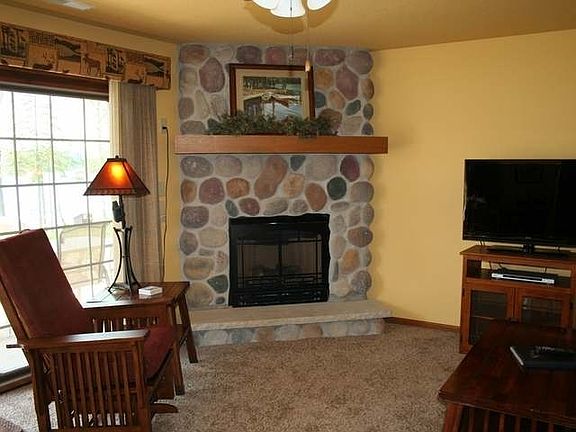 This beautiful unit overlooks Duck Lake with southern exposure and you can walk right out to the level sandy swimming beach. Wild Eagle Lodge offers the finest in north woods resort living on the famous Eagle River Chain of 28 lakes. You'll enjoy a tennis court, indoor swimming pool, sauna, hot tub, screened fish house, paved trails throughout the resort, playground, lake side fire pits, and restaurant on site. This unit has been tastefully updated with newer carpeting, living room furniture and interior paint. The building has newer siding and roof too. The lake side great room features a gas fieldstone fireplace, nice size kitchen with stainless appliances and plenty of cabinets, a dining area with granite table all overlooking the lake. Plus 3 bedrooms, including a master suite, and main level laundry hookups. Great rental income to cover some ownership expenses. Satellite TV, local phone and high speed internet service are included in your monthly dues!