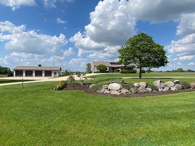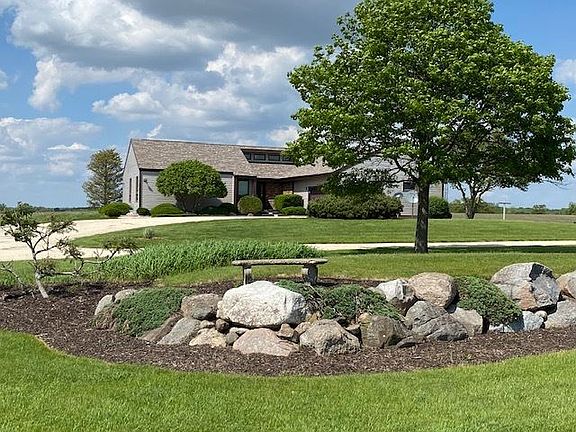 This ranch home sits high in the rolling countryside between Harvard, IL and Lake Geneva, Wi. It is on 5 acres with more land available. In addition to the 2 car attached garage there is a 30' x 56' heated shop / recreational building with a full bath and a large bar area for entertaining. The home has approximately 3,000 sq. ft. of living space with potential for in-law arrangement and certainly room for a big family or all your friends visiting your home in the country. There are 5 bedrooms and 3 full baths. The living room has vaulted ceiling, fireplace and doors to the deck with amazing views. Laundry is conveniently located on the main floor. The finished basement has family room, 2 bedrooms, office and full bathroom. This energy efficient home is 2 x6 construction with triple pane windows. The attic has radiant barrier foil insulation to help keep costs down. There is a backup generator. There is a gazebo and garden shed. You are 4 miles to Walworth, WI and 6 miles to Harvard, IL and Metra trains to Chicago. The land is zoned agriculture and the house is available on 5 up to 60 acres.