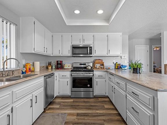Welcome to your dream home! This beautifully updated 3-bedroom, 2-bathroom house offers the perfect blend of style, comfort, and functionality. Spanning 1,257 sq. ft. of living space, this home sits on a massive 11,348 sq. ft. lot, providing plenty of room to relax and entertain. Interior Features: Gorgeous Kitchen: White cabinets, quartz countertops, and stainless steel appliances (stove, dishwasher, microwave). Convenience: Washer and dryer included for your ease. Spacious Living: Open layout with laminate flooring in the kitchen and living areas. Comfortable Bedrooms: Carpeted bedrooms for a cozy feel, all featuring ceiling fans. Climate Control: Stay comfortable year-round with central heat and AC. Exterior Highlights: Outdoor Space: Enjoy the privacy of a fully fenced backyard, perfect for gatherings or simply relaxing. Beautiful Landscaping: A large tree in the front yard provides shade and curb appeal. Parking & Storage: Attached 2-car garage with additional driveway space. This home is move-in ready and perfect for families, professionals, or anyone seeking a serene yet functional living space. Don't miss out on this gem in the heart of California City ! Schedule a showing today and make this house your home!