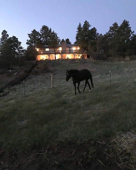 There is no garage but there is a 3 stall barn and 4 fenced acres for horses