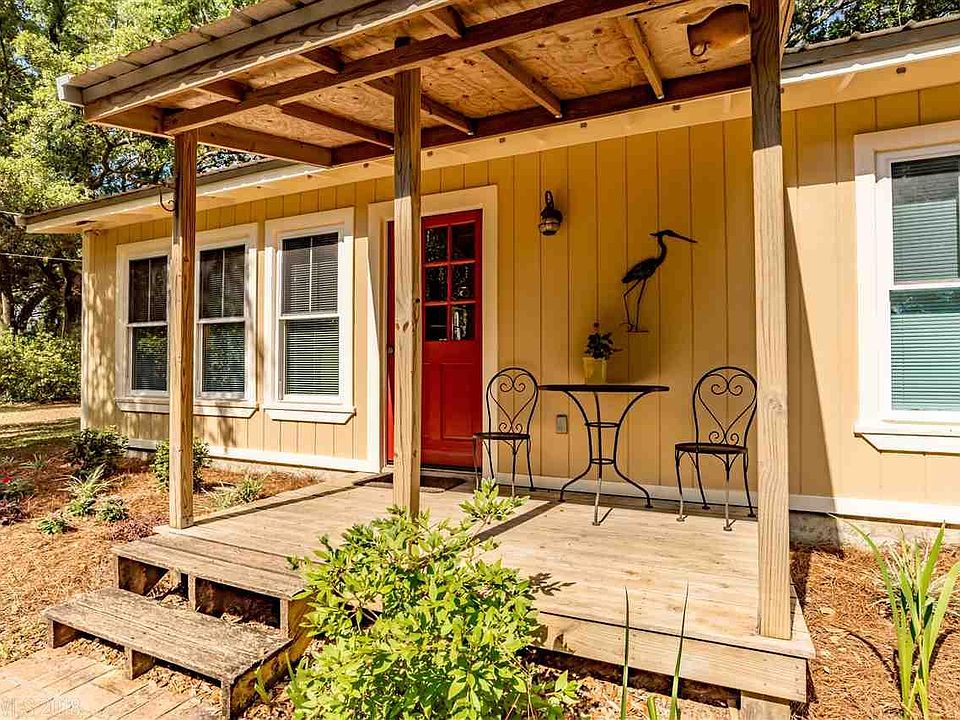 Adorable cottage - Recently Renovated and nestled on the back of 1.45 acres in FAIRHOPE! Close to Schools, Shopping and Downtown Fairhope. 2 Bedrooms Plus and an office, dining room and living room area- This home has been updated with attention to detail to include: SALTILO ( Mexican Tile) Countertops in Kitchen,HANDMADE TALAVERA tile on Kitchen Backsplash and Tub Surround, Custom Master bath including SALTILO Tile Floors, a CLAWFOOT tub,Custom 3x5 Ft Shower with Subway Tile and Glass Deco Strips.4" TONGUE AND GROOVE Walls and Ceilings Throughout home.Recently BRONZE Fortified Roof ( see attached docs), BOSCH Tankless Water Heater, New Windows and authentic Stucco exterior enforces that this home is energy efficient.Gas stove is dual fuel- Floors are split brick and tile thought the home- Both Sheds ( 12x16 and 8x10) to convey with the home) NEW PLUMBING, ELECTRIC, SEPTIC installed in 2000- HVAC replaced in 2010- Outdoor furniture and deep freeze will not convey with the home- Ask agent for a complete list of those items. Home warranty and Termite Bond included- All city utilities
