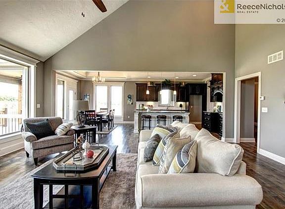 STAGED & MOVE-IN READY! The Laurel- An expansive 1.5 story w/soaring ceilings & fantastic finishes! boasting 4 bedrooms, 3.1 baths, & 3 car garage on a great lot backing to green space. The spacious daylight basement is laid out perfectly for finishing w/multiple stubs for bathroom & wet bar, walk-up to walk-out for easy access to the back yard & walking trail, & large storm shelter beneath the porch. Main floor master suite is a private oasis tucked away from the 3 large bedrooms upstairs, all w/bathroom access.