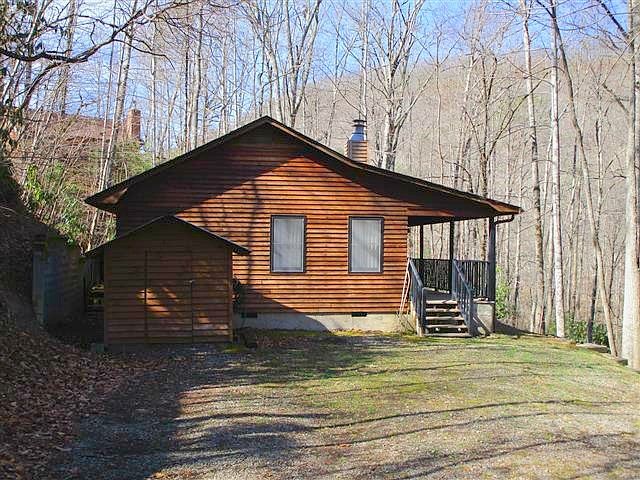 Tucked back in a hollow in the mountains of North Carolina and just waiting for you. This 2bd/2ba home is perfect for your summer retreat, vacation rental or year round living. Pretty laminate floors in the kitchen, living room areas, gas log fireplace, central heat and air and 2 large bedrooms. Master has large walk in closet with cedar and en suite bath, 2nd bedroom mirrors the master on the other side of the home.French doors access from all the rooms lead to the large rocking chair front porch to sit and listen to the noisy creek. Walk down to the concrete benches on the creek and have a picnic or go out to the common area and enjoy the beautiful waterfall and small wading pools.Easy access to a wonderful storage building that matches the home. Very privately located, paved once you get to the subdivision, gated entry, and just a gorgeous setting. New roof installed July 2017