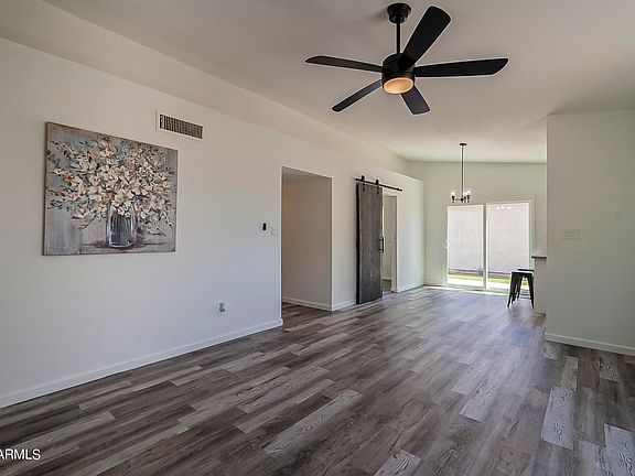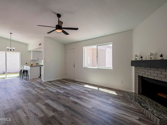 Come see this beautiful Chandler home with plenty of upgrades to go around! The interior of the home is light and bright with modern touches throughout and the exterior is low maintenance and cozy. The kitchen features beautiful stainless steel appliances, white shaker cabinets, matching backsplash, and shiny quartz countertops. Both bathrooms share simple and modern decor as seen throughout the home. The laundry room includes additional cabinets, convenient for extra storage. Additional highlights include an epoxy garage, new roof, new dual pane windows and patio door, new watering system (drips for plants and sprinklers for grass), a fireplace in family room and a stunning barn door. Finally, this home is conveniently located about 3 miles from downtown Chandler.
