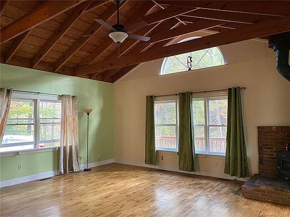 Price reduction!! Home is being sold AS-IS. Cozy cottage in the country with all the privacy you need. This home boasts gorgeous exposed beam vaulted ceilings in the Livingroom as well as a cozy woodstove. The living room opens to a screened in porch that brings the outdoors in. The primary suite also has vaulted exposed beam ceilings and it's own full bath. Kitchen has eat in area and opens up to covered back porch. There is another bedroom plus a flex room with a closet. Just outside you will find a wonderful space for gardening, sitting by firepit, or relaxing in the shade. There is a 16 x 12 studio/workshop complete with electricity. New roof in 2019. New hot H2O heater in 2020. New septic main line and leach field 2020. Hughesnet is the only internet provider for this area, currently. This adorable cottage is an easy 25 minute drive to Asheville and will not last long!