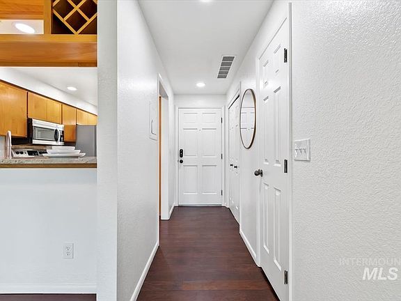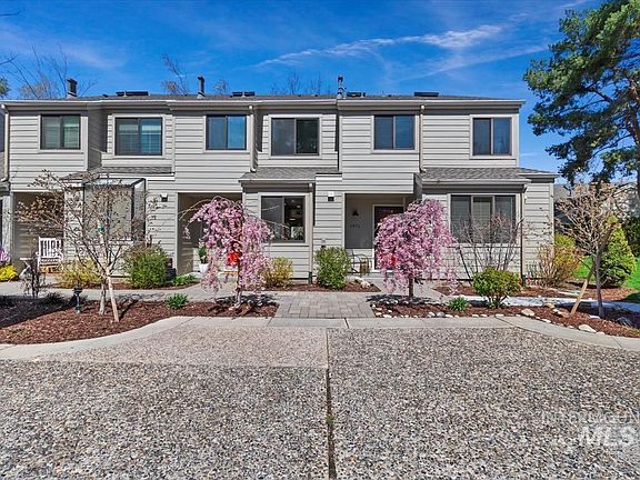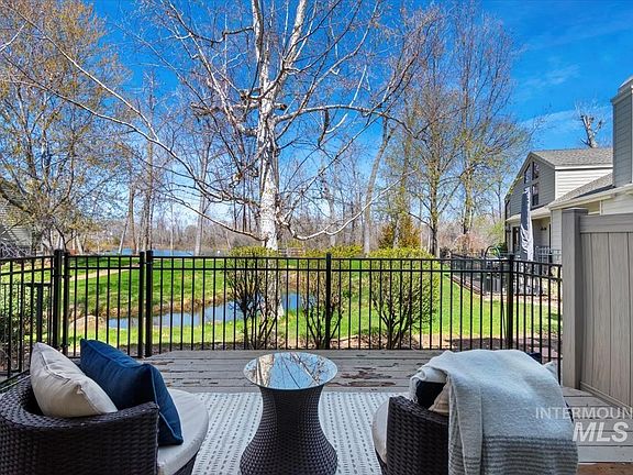 Remodeled townhome offers a tranquil escape with breathtaking views of Magpie Lake and Boise greenbelt. The entertainer's kitchen is a true masterpiece, boasting luxurious slab granite counters, a stylish bar area, gleaming stainless steel appliances, and ample cabinetry for both functionality and style. Vaulted ceilings add a sense of grandeur, while convenient desk alcoves and California Closets in the spacious bedrooms ensure comfort and organization are at the forefront. The primary bedroom is a haven of serenity, with its captivating lake views and abundant natural light, creating an inviting ambiance that enhances relaxation. Complete with an ensuite bathroom, convenience and luxury are seamlessly integrated into your daily retreat. Minutes from restaurants, shopping, and downtown Boise. Spacious garage storage! Community boasts pool, tennis/pickleball courts, walking paths, and clubhouse!