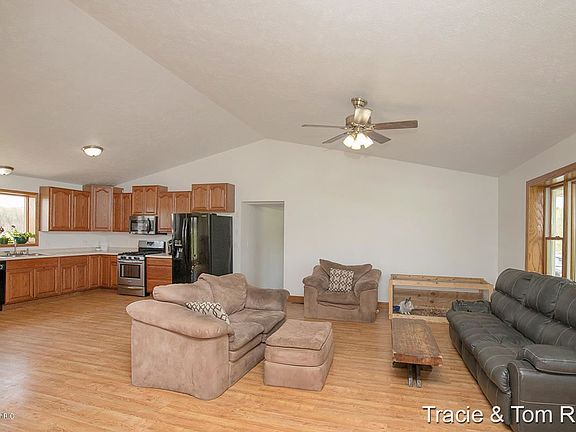Wonderful ranch home located just minutes from the highway and downtown Howard City. As you enter you will find a large great room style home with plenty of space to entertain and enjoy gatherings. The kitchen with oak cabinets and a pantry overlooks the fenced in backyard and the eating area offers french doors to the deck. The 2 stall garage is extra big and leads into a large mudroom area with a full bath and plenty of storage space. All of the bedrooms on the main floor have the space you are looking for and the master suite offers a private full bath plus another full bath is located near the bedrooms. The daylight level has 2 more huge bedrooms and a room large enough for a game area.