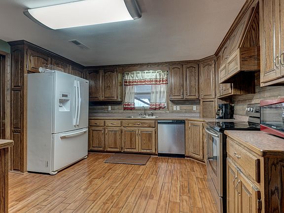 You will love the location of this one-level 2300 square foot home on 4.6 acres. Large master suite with walk-in closet. 2nd living area is wired and was used as media room. Dual heating sources include central wood furnace located in garage and central electric. Mature trees shade huge outdoor living area overlooking backyard. 1500 square foot barn/shop has concrete floor, electric with 220 and 2 animal stalls in back. Fenced with multiple fencing options. Make your appointment to tour today!