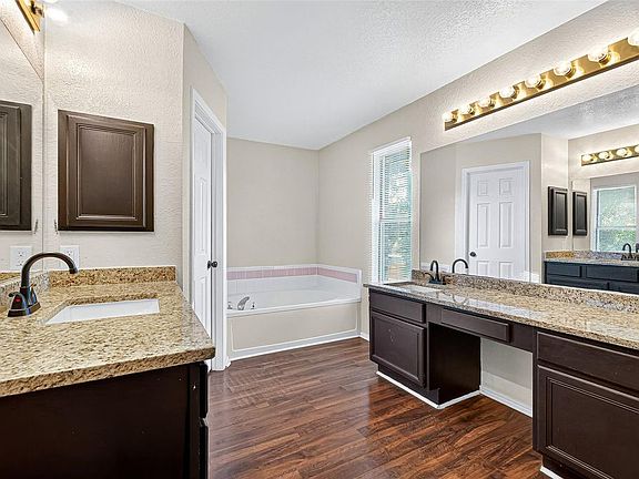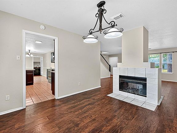 Charming 3-bedroom, 2.5-bath home, located in the Estates of Highland Creek community, offers plenty of space and an open layout perfect for gatherings and everyday living. A dramatic double-sided fireplace connects the living and dining rooms, serving as a striking centerpiece for the home. The large kitchen features a breakfast bar, bright breakfast nook, and abundant cabinet space, ideal for cooking and hosting. Laminate wood flooring and tile extend throughout, providing a clean, polished look. Upstairs, the expansive primary bedroom is filled with natural light and includes a bath with dual sinks, a whirlpool tub, full-entry shower, and a large full-entry closet. Two additional bedrooms and a spacious gameroom offer versatility for work, hobbies, or relaxation. The backyard has a covered deck and no back neighbors perfect for outdoor gatherings or quiet evenings. This home offers an exceptional layout and a sought-after location in a welcoming community.