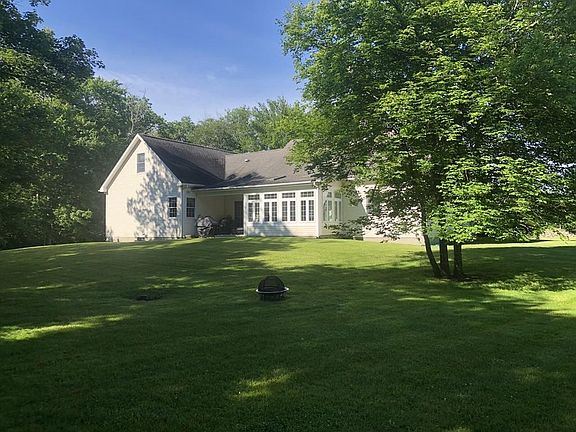 Close to Adamsville & graced by stone walls is this impeccable Ranch w/sweet farmer's porch set back from road in private setting! Tranquil Adamsville River meanders through the property. Built in 2002 w/recent 4-season room w/radiant heat that beckons. 3 Bedrooms, 2 Baths. Amenities include freshly painted interior; Living Room w/wood burning fireplace, newer hickory flooring; new wall-to-wall carpeting; updated master bathroom; Toto Washlet toilets; laundry within steps of master; 2nd floor office w/easy walk-in attic! Vast dry basement, generator, outdoor shower, new porch railings, extensive invisible fenced area for your dog! 2-car attached Garage. Explore the 12.32 acres, enjoy woodland walk to river, lower taxes on open space acreage. WOW!