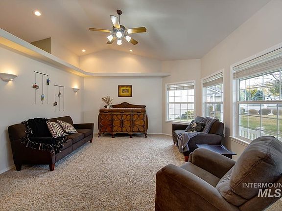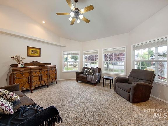 Sellers are offering a $10,000.00 credit for buyers closing costs! Great location in central Meridian with no back neighbors. Come see this well cared for and appropriately priced 4 bed, 3 bath home with a 4 CAR GARAGE with pull through access on the 4th bay! The open main floor features two living areas, vaulted ceilings and bay windows, with a very nice kitchen with quartz countertops and stainless steel appliances. Two living areas ideal for entertaining or separate activities, still being open to the dining area and kitchen. A full bath and bedroom ideal for guests or main floor living off the family room complete with a fireplace. Laundry is convenient when you have these custom cabinets with pullout drying racks! Play Tennis or walk on track at the high school that the home backs up to. New HVAC 2022, roof is only 5 yo. Mature landscape with a great covered patio in the backyard!