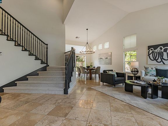 Breathtaking! The private and serene backyard features a pool with waterfall features and a spa on a professionally landscaped .53 acre lot. Located at the top of a court, with 3,118 square feet of living space, this expansive showplace includes an in-law suite with a kitchen, full bath, bedroom and separate entrances to the garage and outside. New carpet and interior paint throughout, as well as new hardware and light fixtures. Enjoy the formal living and dining area, or relax in the large family room that conveniently flows from the kitchen and casual dining area. The home has five bedrooms, with four located upstairs. The primary bedroom is stunning with a view of the pool, a fireplace and a soaking tub to help unwind after a long day. Additional features include solar, an inside laundry room with sink, a 3-car garage, a large Tuff Shed and garden boxes. It is located on a private road at the top of a court. You must see to appreciate all of the amenities included! Located in the Clayton Valley Charter Boundaries which allows for High School choices!