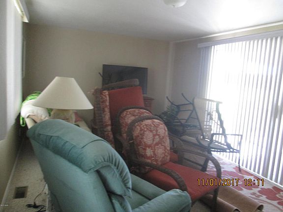 Move in ready Completely furnished living area's. 2 Baths 12' x 18' AZ with a 10' glass patio doors over looking Green Belt and 2 patio's (upper & lower) Washer & Dryer room has lge storage cabinets (floor to ceiling) Double payne window's Newer A/C unit 3 years. Covered car port. Elect Fireplace under TV>