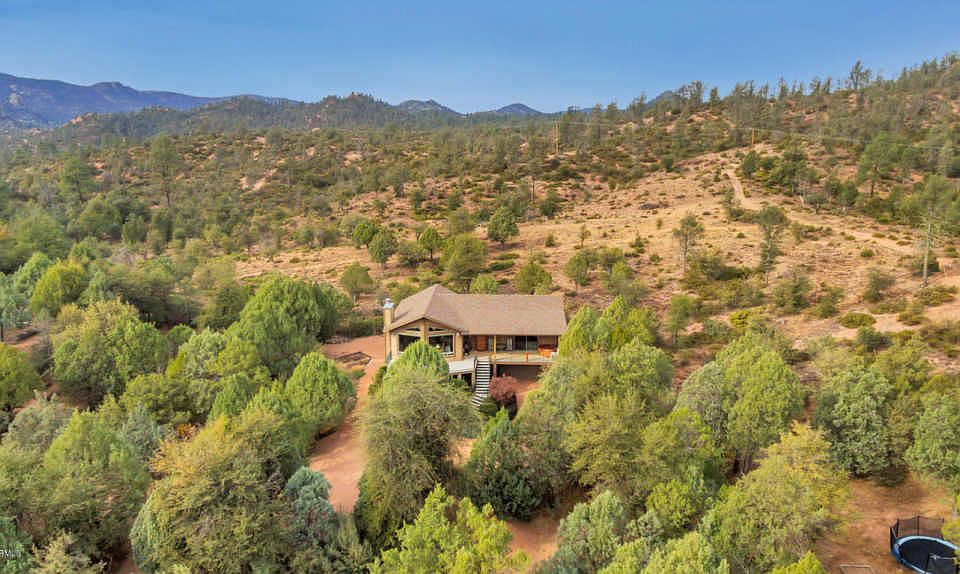 Visit this home and its amazing location and you will want to call Elk Wood Lodge your home! This 3 bedroom/3 bath home is located on 2.46 usable acres back to the Tonto National Forest with immediate access to hiking, horseback riding or 4-wheeling trails and panoramic mountain views. The home has extensive outdoor living from the Trex deck, with custom designed steel railing, and panoramic mountain and forest views in every direction. The Great Room boasts Australian Cypress wood floors, tongue and groove ceiling, stone fireplace and lots of windows to feature the spectacular views. The Master Suite provides easy access to the outside deck through expansive patio doors and an en suite bath with separate jetted tub and shower. Downstairs there are two bedrooms with a Jack & Jill bathroom, a living area (currently set up as an office) and extensive storage. The large 2-car garage hosts a large work bench and more storage space. The grounds are landscaped in British Tea Garden style with a handcrafted Gazebo for outdoor dining and professionally landscaped with trees and plants. There is plenty of space to add horse facilities, RV parking, workshop, storage, etc. The property has a great well and includes two 85-gallon storage bladders with an irrigation system to most of the property. The property is completely fenced and gated for additional privacy.