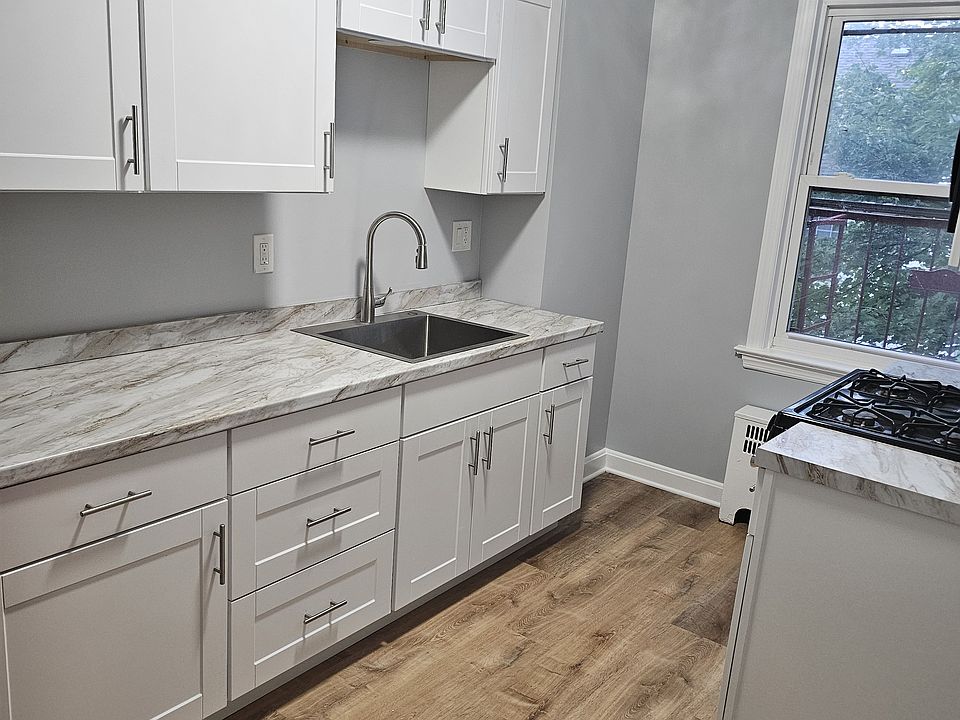 Discover this newly renovated 2-bedroom, 1-bath apartment it's a standout find! Featuring a brand-new kitchen, bathroom, and windows, it offers a fresh and stylish living space. Ideally located across from Rahway River Park, you'll have a great spot for leisurely strolls. With nearby shopping, dining options, and easy public transportation access, you're only 60 minutes from NYC. The rent covers heat and hot water, and there's a card-operated laundry room on the premises. Plus, you'll have the convenience of one parking spot included. This apartment truly seems like a wonderful place to call home! Owner pays heat & hot water. Tenant pays gas & electric. There is a 1 month broker fee at the time of lease signing