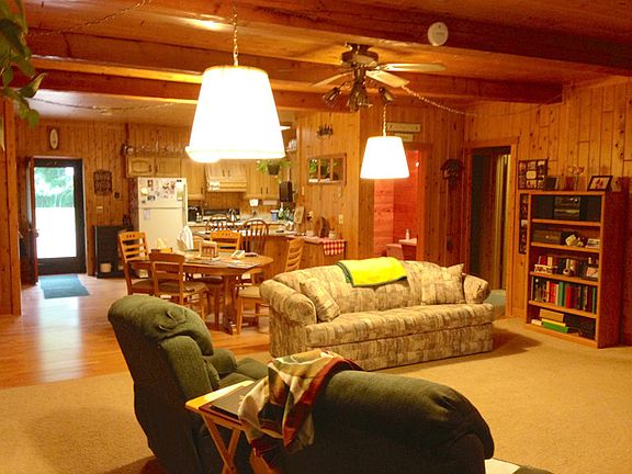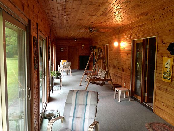 Very private location for this 4 bedroom, 2.5 bath home on over 21 acres with a pond. Beautiful tongue and groove throughout, floor to ceiling stone fireplace, master suite with private bath and a sunroom porch with view to backyard. Property includes an additional 30 x 40 shed, volleyball court and firepit. A must see!