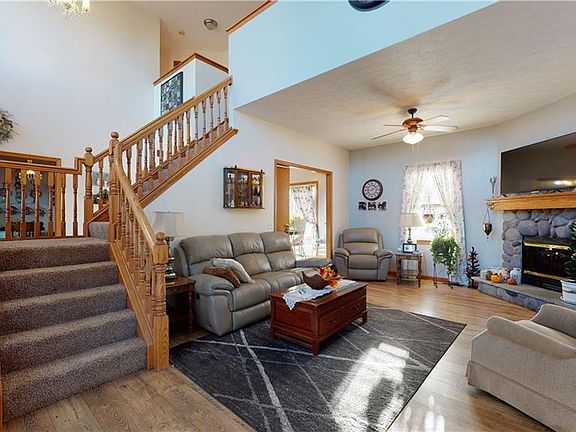 This fantastic Colonial offers so many of the features that every home buyer is looking for. Starting on the first floor, an impressive two-story foyer leads to the large eat-in kitchen that boasts quartz countertops, glass backsplash, all state-of-the-art appl. a generous panty and French doors that lead to the back yard. Off of the kitchen is the spacious Great Room that includes a gas fireplace. A formal dining is perfect for Sunday dinners. The first floor master suite includes two walk-in closets. The master bath offers a large corner soaking tub and a separate shower. Completing the first floor is a laundry room that is just steps away from the master bedroom. The entire first floor boasts wood grain vinyl flooring. A winding staircase leading to the second floor opens to a sizeable loft area that is a perfect office area or second floor family room. Two other nicely sized bedrooms and a full bath finishes off the second story. The full basement is plumbed for a bathroom and the hot water tank is 3 years old and the water softener was replaced in 2019. The exterior of the home has a partial stone front, adding to the curb appeal. A front porch, three car garage that offers hot and cold water hook up and 220 amp electrical service, rear patio that includes a hot tub and a storage shed are all part of what you will enjoy as the new owner. Located on a cul-de-sac and a .82-acre lot, 1974 Settlers Lane is the perfect place to call home. Call for your private showing today.