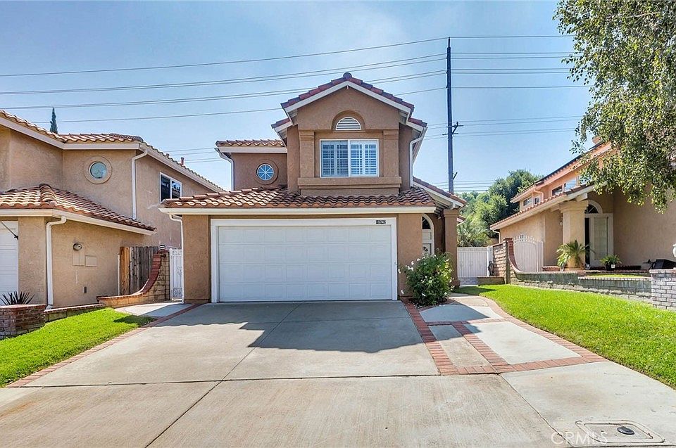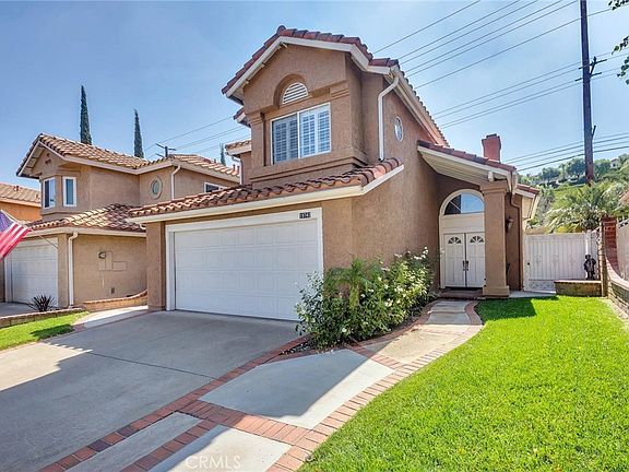Welcome to this beautiful, upgraded Santa Clarita Valley home located on a quiet cul-de-sac in one of the most desirable areas of Newhall. This home features 3 bedrooms, 3 bathrooms in over 1700 sq. ft., with an enclosed covered patio built in 1988. The Brick walkway leads you to double doors entry. The living room has a soaring ceiling, travertine patterned tile flooring, a custom travertine medallion insert and adjoins the formal dining area. The open kitchen has been upgraded with granite counters accented by counter to ceiling glass tile backsplash, stainless steel stove and refrigerator, bay window with a serving buffet with additional undercounter storage, travertine pattern tile floors, ample cabinet & counter space, recessed lighting, and breakfast bar which opens to the family room/great room. The family room offers a gas fireplace, recessed lights and wood French doors leading to enclosed rear patio room. A staircase leads you to the second floor. A spacious primary suite with double door entry has a vaulted ceiling, plantation shutters and large walk in closet. The upgraded Master bath enjoys a dual sink vanity, bathtub, custom tile throughout and a spacious walk-in closet. Two additional bedrooms and an open loft/flex space completes this versatile floorplan. The rear yard offers an enclosed sunroom, patio area and an extra storage shed. The community offer a pool for all to enjoy.