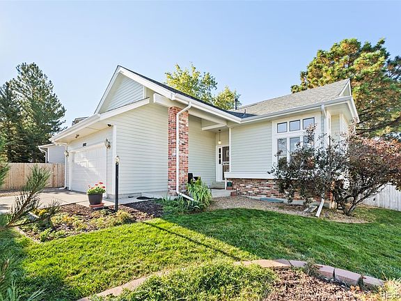 Walk into this well cared for home and the first thing you'll notice is the vaulted ceilings, the abundance of natural light, and the open floor plan. The spacious custom chef's kitchen will delight you with lots of built in storage! Cozy up for breakfast in the eat-in kitchen complete with a built-in bench for seating that adds even more built in storage. The living/dining area is open and bright with lots of natural light streaming in and it opens to a very large deck and a backyard oasis, complete with a hot tub for relaxing. The main level is completed by an office that could easily transform into another bedroom, a secondary bedroom, and a very spacious primary suite with walk-in closet and heated floors in the bathroom. The basement has a nonconforming bedroom, a library area, and large space for you to turn into a movie room, craft room, playroom, or gym. This home has been well maintained and all the big stuff is done; HVAC/AC new 2021, roof & gutters new 2023. Beautiful mature landscaping, close to shopping, dining, E-470.