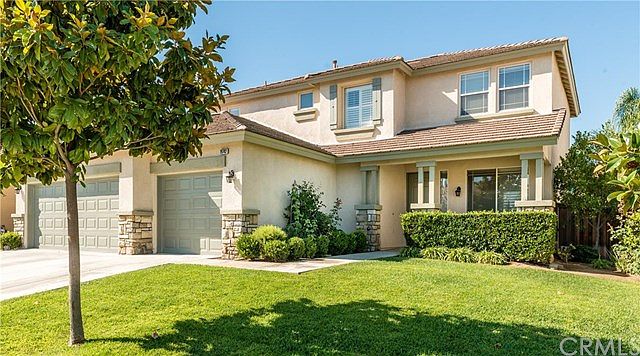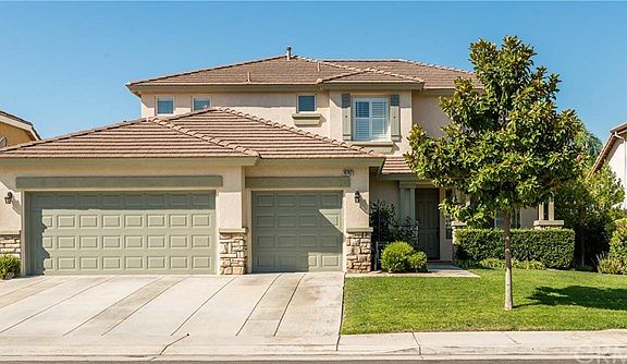 This stunning Two story home located in the gated community of Autumn Ridge in Orangecrest. This home is decorator perfect with upgrades throughout. The open floor plan lends itself to family casual living with the family room and kitchen adjacent each other.The family room has a granite faced fireplace and the dining room is extra large to accommodate a larger dining set. The gourmet kitchen boasts granite counter-tops, breakfast bar and separate homework station. Wood floors are in family living area, while 18 tile is in Master bath area. Arched entrances add a decorator touch while earth tones colors add a blank palette, in which to accessorize and personalize your home.#13;The back yard is perfect of the growing family with patio, bark play play area and custom patio cover. The association offers a community playground and is walking distance to Ben Franklin Elementary School and beautiful Orangecrest Community Park and library. This home could easily be adapted to a 5 bedroom by adding a door to the upstairs bonus room plus has one bedroom downstairs.