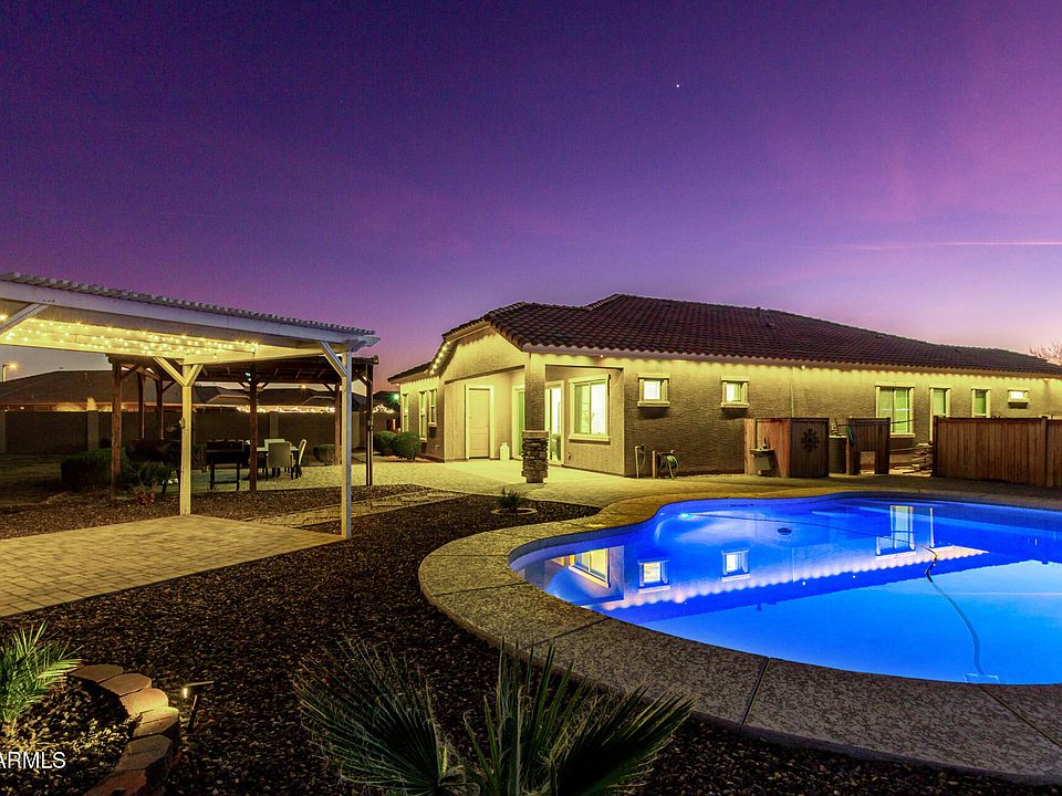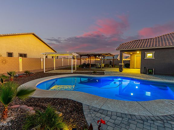 Best Property Available in Blue Horizons! You'll love all that this 4 bed, 2.5 bath, 2328 sqft home has to offer. Sitting on nearly 14000 sq ft with easy access to the largest park in the center of this highly-desired neighborhood, you'll enjoy the poolside sunsets, the dual pagodas perfect for entertaining, thoughtfully designed landscaping, with even more space to put the off-road toys behind the RV gate. Upgrades galore await you inside with a split master off the fully-equipped kitchen & dining spaces, a separate office/den behind incredible barn doors, a pass-through laundry attached to the master closet and wood-look tile throughout. Spacious guest rooms, a 3-car tandem garage/workspace, patio access from the 1/2 bath & so much more you will have to see for yourself! Make it yours!