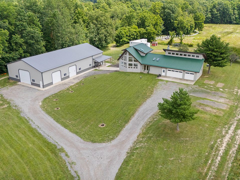 Discover your own private Harbor Country retreat on 25 picturesque acres. This one-of-a-kind property features rolling trails, fruit trees, and a serene pond that invites relaxation and exploration. A substantial pole barn offers exceptional space for car enthusiasts, a workshop, or a creative studio, while the home itself provides a versatile layout with thoughtful finishes already in place and plenty of opportunity for a new owner to put their own stamp on it. Inside, you'll find three bedrooms, 2.5 baths, an expansive kitchen and dining area, and a spacious primary suite tucked on the upper level. The lower level and bonus areas lend themselves to recreation, fitness, or spa-style amenities. With its blend of indoor comfort and outdoor adventure, this property is truly a canvas for your vision. Whether you imagine it as a year-round residence, a weekend retreat, or an inspiring place to create, it's a rare opportunity to own a substantial piece of Michigan's natural beauty.