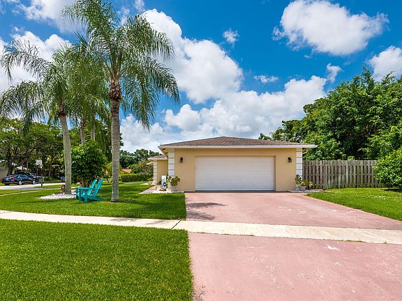 Fabulous and very unique 4 bedroom, 2 bathroom home on an oversized corner lot with a 2 car garage on one side of the property and a full circle driveway in front for plenty of parking, space on the side to store a 30' boat and a huge backyard with plenty of space for a pool. The home features brand new, beautiful kitchen with Slate appliances, wide open floor plan perfect for entertaining, remodeled bathrooms, and gorgeous new flooring throughout, IMPACT GLASS WINDOWS, IMPACT FRONT DOOR, IMPACT GARAGE DOOR, newer Trane A/C, newer W/H, new electrical panel in garage, an amazing enclosed patio with pavers. This home has absolutely everything you've been looking for! Located In an amazing community with low HOA and in Boca's excellent school zone. Come see it before it's too late!!