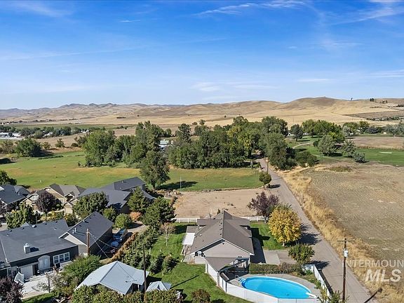 Tucked away on a picturesque lot across from the golf course, this home offers a blend of charm, comfort, and laid-back Idaho living! Situated on just under half an acre, the property features its own vineyard, a fully fenced in-ground pool, garden space, and a private guest house! The 3 bed/3.5 bath main residence spans a spacious 2472 sq ft. Heated tile floor, breakfast bar island, and granite counter tops in the kitchen. Large living room upstairs & bonus room downstairs both feature a cozy fireplace and plenty of space for entertaining. Complete w/ a 2 car garage w/ a bathroom & ample storage or workspace for all of your tools, projects & hobbies. The guesthouse provides a separate living space with its own kitchen and additional 4th bathroom, providing a flexible space ideal for multigenerational living, visiting guests, or potential rental income. This home checks all the boxes! Don't miss it! Schedule a showing today! Need more space? Additional acreage available next door! BTVAI