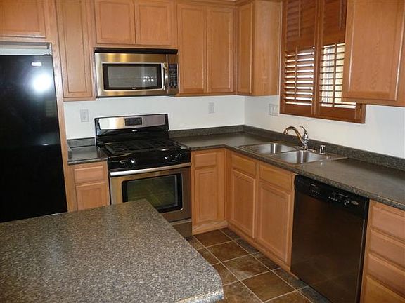 Master bedroom and large second bedroom upstairs, third bedroom downstairs. Three full bathrooms - two upstairs, one downstairs. Indoor laundry upstairs. Washer and Dryer included. Master Bathroom includes large walk-in closet, tub and separate shower. The house includes an attached two car garage, backyard patio with side yard access. Large storage area under stairs. Large island in kitchen area. Refrigerator, Microwave, Oven, Dishwasher. The house is near Cyan Park which includes Barbecue, Basketball Court, Picnic Shelter, Playground, Rentable Shelter, Restrooms, Soccer/Football field, Tables/Benches, Tennis Court, Water Play Toys. There are walking/biking trails in the neighborhood. The home is located near Veterans parkway and South Meadows Parkway. Good access to shopping, schools and freeway. Landlord lives nearby and responds quickly to calls. 12 month lease. Renter is responsible for Gas, Electric, Water, Garbage, Internet, TV. Owner pay property tax and home owners association fee.