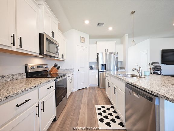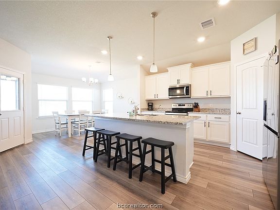 Exquisite 4-bedroom, 2.5-bathroom home with bonus room in Pleasant Hill! Beautifully constructed, this home offers an open concept floor plan with a spacious living room open to the kitchen, breakfast nook, and much more. Enjoy cooking in the gourmet kitchen featuring sparkling granite counters, island, cabinetry, pantry, and stainless appliance package. Escape to the primary suite with relaxing garden tub and tile shower, and huge walk-in closet that connects through to the laundry room! Smart home features include video doorbell, programmable thermostat, and smart lights at the front entry. Pleasant Hill is conveniently located just minutes to Lake Bryan, Texas A&M’s RELLIS Campus, Historic Downtown Bryan, and a quick jaunt to the heart of Bryan/College Station. Don't forget the vinyl plank flooring throughout common areas, screened in covered patio, and more! With an energy efficient design, this home is sure to be #1 on your list. Schedule your showing today and make it yours!