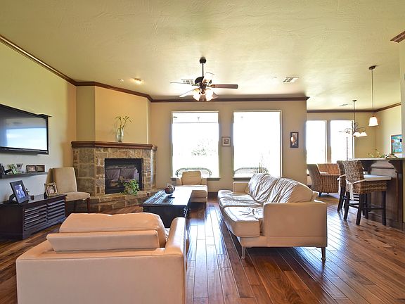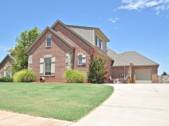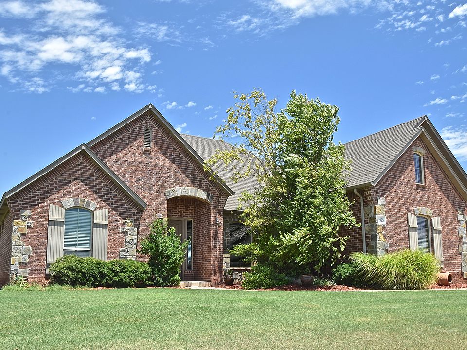Reduced! One of Deer Creek's favorite neighborhoods - Cumberland Crossing. Over 1/2 acre lot in gated area with ponds. Wonderful flexible floor plan with upstairs bonus/game room with 1/2 bath. 4th bed or study is off the entry and has a closet and access to a full bath. Wood floors throughout. Formal dining area. Spacious living open to kitchen which has granite, stainless appliances and pantry. Separate master suite with back-yard access, corner whirlpool tub, spacious shower, double vanities, walk-in closet. Large utility room includes a mud bench and closet. Storm shelter in the garage. Covered patio in back. Sprinkler system. Great location in Deer Creek close to Prairie Vale Elementary and Deer Creek Middle School.