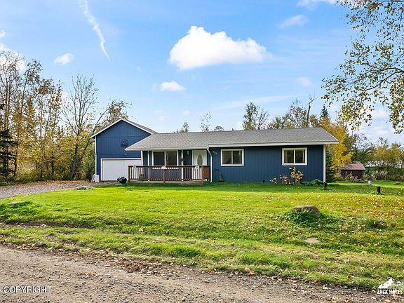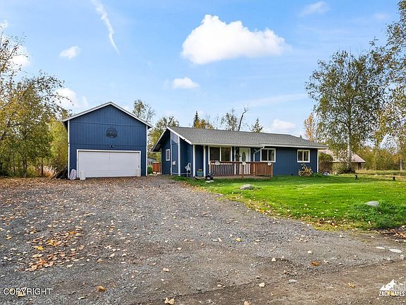 Nestled on a roomy half-acre just minutes from Hatcher Pass, this charming ranch blends comfort, convenience, and outdoor living. A bright south-facing yard and expansive deck invite you to soak up the sun, while the oversized garage with tall attic storage keeps gear organized and out of sight. The extended driveway easily accommodates RVs, boats, or extra parking. Inside, modern stainlessappliances and a cozy gas fireplace with remote start add warmth and style. Fresh exterior paint adds to the curb appeal, making this home move-in ready.