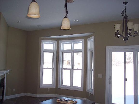 Just completed and a true must see! Split bedroom design. Master suite with tiled showier w/2 shower heads. J Miller kitchen with tle backsplash, tile flooring, under counter lights and task lighting. Dining rm with crown molding. Hearth room & great room with transformatuion windows. Prewired for surrond sound and preplumbed for central vac. Zoned heating & cooling with a heat pump. All closets with closet organizer systems. Daylight lower level with windows at each end. 3 car garage. Ceramic Tile New Floor Cover New Paint