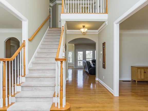 Imagine yourself enjoying breathtaking sunset LAKE views at this beautiful Brookstone subdivision home! If the rocking chair front porch, large deck overlooking backyard & lake, entertaining patio & direct lake access wasn't enough - step inside and find an immaculate interior with features including hardwood floors, crown molding, St. Cecilia countertops in kitchen with stainless steel appliances + wine cooler, Cararra marble in the master bath right off the expansive master suite with private fireplace and sitting room PLUS media & rec room on the terrace level!