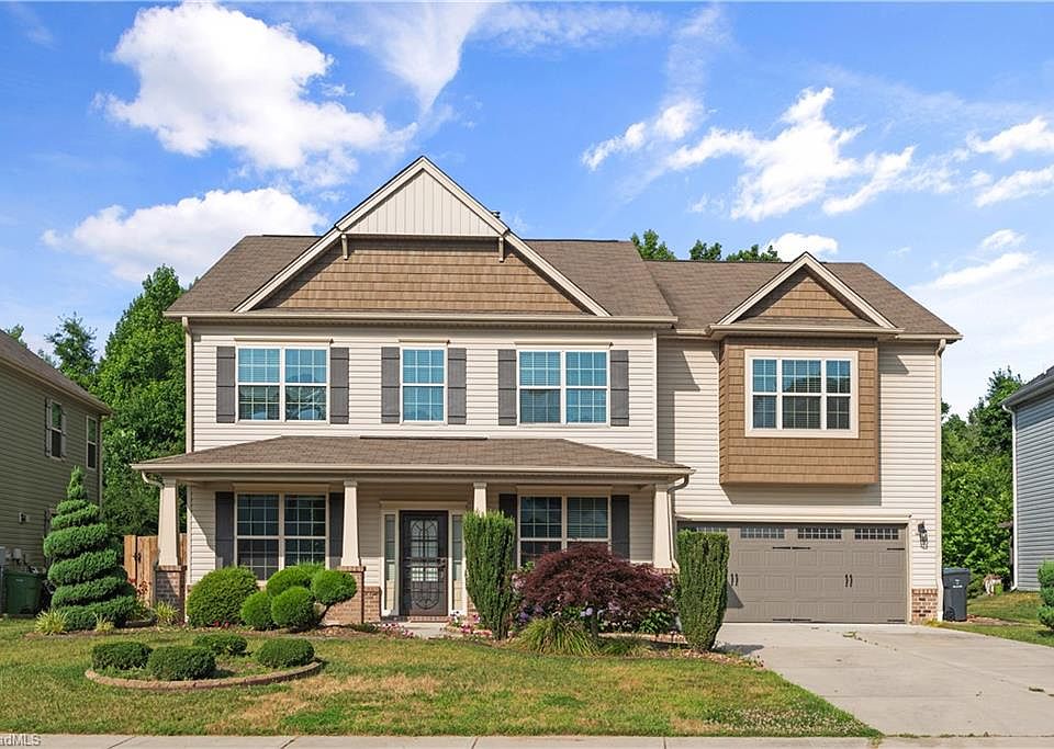 Discover this amazing home offering incredible value with over 3,700 heated sq ft. This versatile floor plan accommodates any family size, providing ample space for entertaining or family gatherings. Features 4 bedrooms plus an office or optional 5th bedroom. The open concept design seamlessly connects the living room, kitchen and family room perfect for socializing when entertaining. The fully equipped kitchen boasts plenty of cabinets, pantry and refrigerator. All bedrooms are located on the second level providing privacy from the main living area. The primary bedroom has an offset area ideal for a sitting room. Primary bath is also spacious and well as the walk-in closet. Secondary bedrooms are also spacious with good size closets. The extensive landscaping features specialty trees and shrubs adding to the home's charm. Located conveniently near the TRIAD, the home offers various routes for easy access. It is close to shopping, restaurants and major highway.