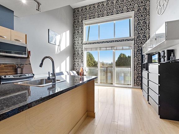 Discover this bright top-floor condo at The Crossing. Your ideal entry into homeownership or smart investment in Central Abbotsford. This versatile studio/1 bedroom, 1 bathroom home boasts modern features: sleek stainless steel appliances, elegant granite counters, in-suite laundry, and a charming Juliet balcony. Enjoy soaring vaulted living room ceiling and tons of natural light pouring in. Building perks include underground parking, storage locker, fitness center, amenities room, and conference room. This home is in a prime central location – steps to shopping, UFV, restaurants, and quick freeway access for effortless commutes. Rentals are allowed and 1 cat permitted. Call today to view!
