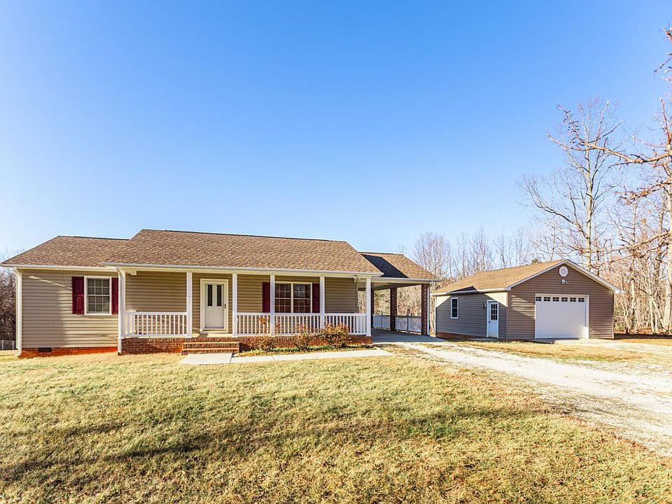 Located just 8 minutes to Historic Appomattox, +/-25 min to Lynchburg, and +/- 25 min to Farmville, is this gorgeous low maintenance rancher. Sitting on over an acre rectangular lot, there is room for yard activities front or back! Many fantastic amenities including two main level bedrooms, one bath, open kitchen and spacious living room, detached two car garage, and attached single carport. Carpet, tile, and hardwood throughout! Enjoy your morning cup of coffee on the picturesque front porch or work on your project in the shop/garage. Lovingly cared for and ready for you to move in.