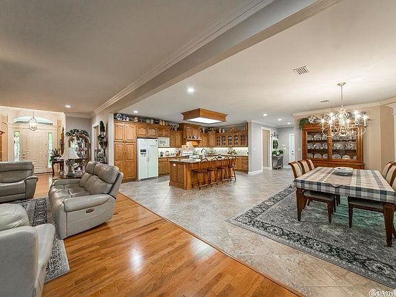 Custom built BEAUTY! Breath taking view as you drive up through the trees! All hardwood flooring and tile for easy care. Huge living area with site built wood burning fireplace. Plantation blinds. Huge kitchen and bar for entertaining. Pantry is also Safe Room. Enormous laundry room for every need possible! TWO MASTER SUITES, guest bedroom and office with built ins that could be 4th bedroom. Shop is insulated with gas heat, bathroom and boat storage. Nature at its best from porches. SEE AGENT NOTES