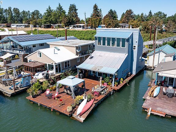 Open 8/14/22 Sat 11-2pm Moorage Open -Out in Front, Life on the River? South facing w/spacious decks, outdoor kitchen for entertaining,outside slip with ownership. All new exterior siding house looks amazing. Light & bright remodeled kitchen with Cherry Cabinets, tile, built-ins & new hardwds.Loft for storage plus a great office with direct view. All appliance are included.Lots of storage in the home & 2 sheds, plus a small workshop area. Gated Community. Close to Golf, Airport, shopping.